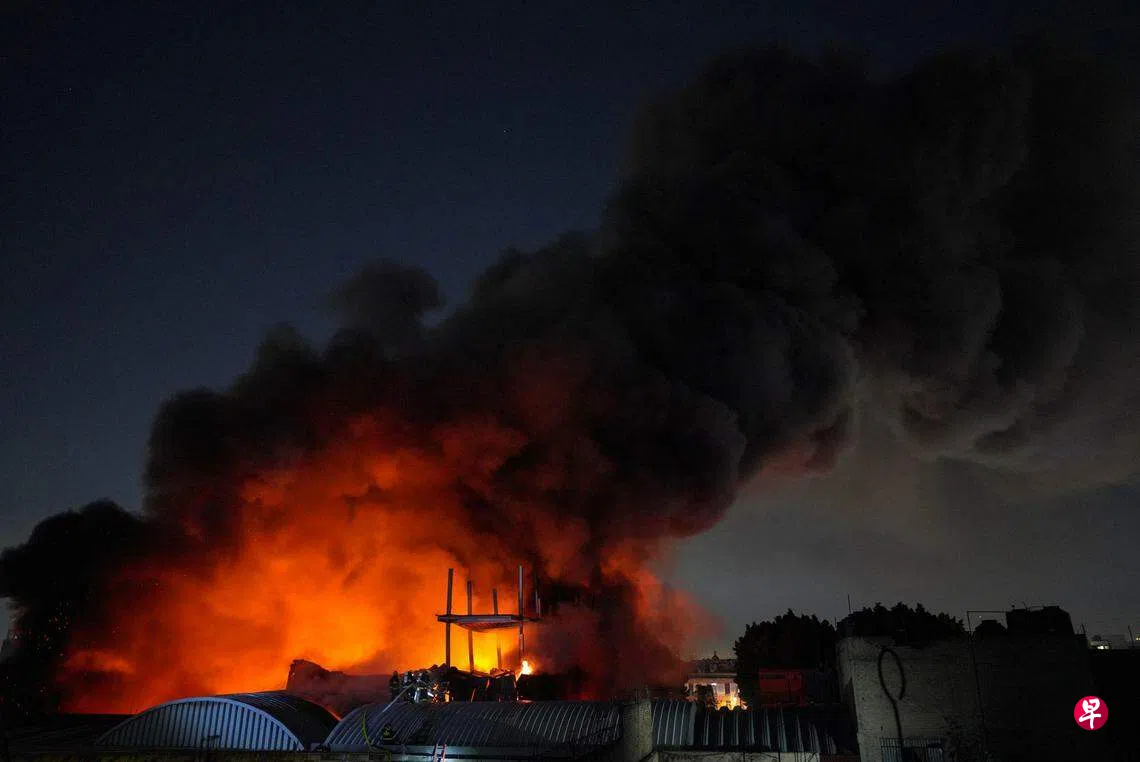 路透社报道,当地媒体称火灾是从墨西哥城历史中心附近特皮托区(Tepito)的一个鞋厂仓库烧起。大火狂烧几小时后,远在数公里外仍可看到火焰。