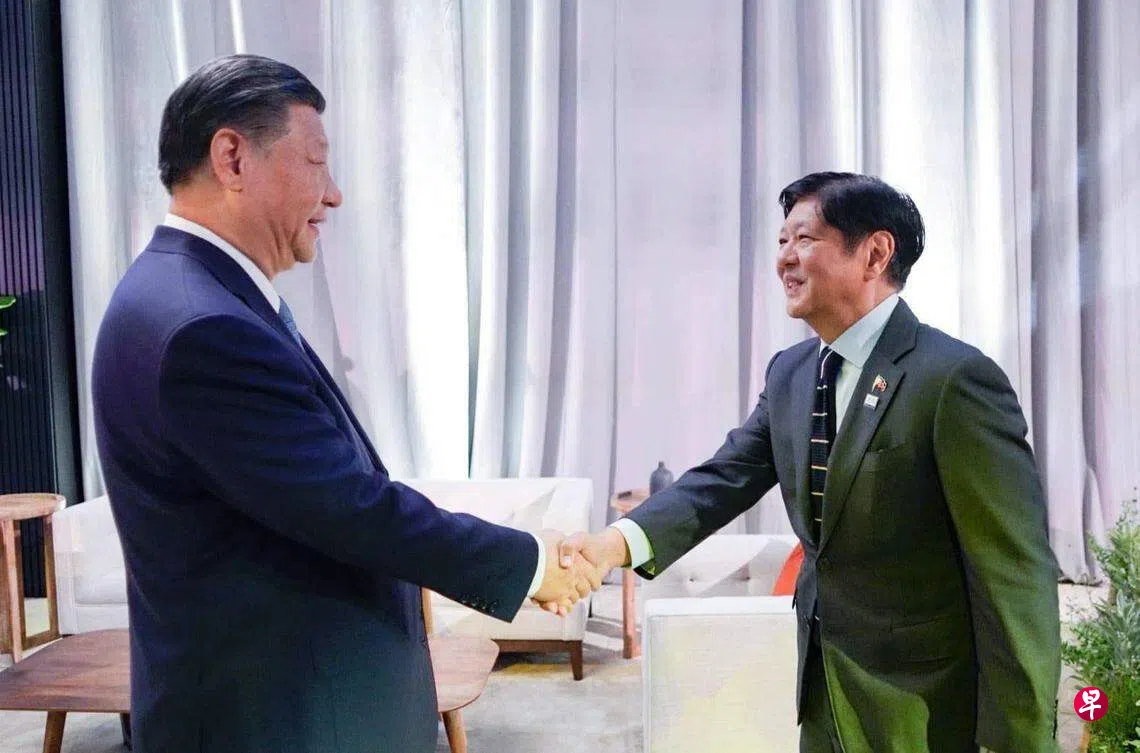 几天前,小马可斯在旧金山举行的APEC峰会期间会见了中国国家主席习近平,两人讨论了两国的海洋领土争端。小马可斯早些时候表示,两人一致认为,南海争端不应成为两国关系的“决定性因素”。