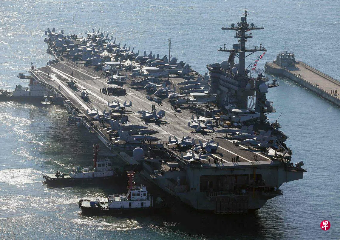 美国海军“卡尔·文森”号核动力航空母舰星期二(11月21日)访问韩国,并在釜山作战基地停靠。