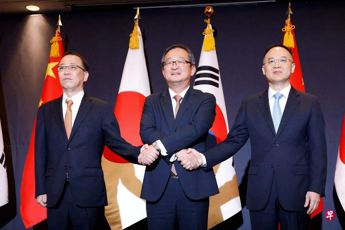 韩中日三国外长星期天(11月26日)将齐聚韩国釜山,商讨重启韩中日领导人会议事宜。