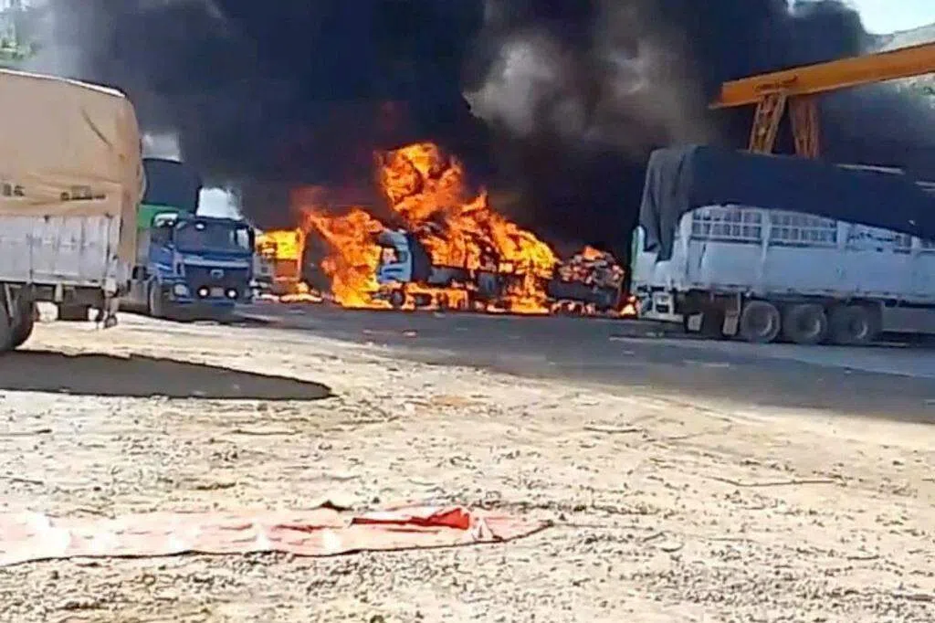 本周早些时候,缅甸军政府发言人绍敏通说,停泊在边境口岸附近的大约120辆卡车起火,并将责任归咎于武装组织。