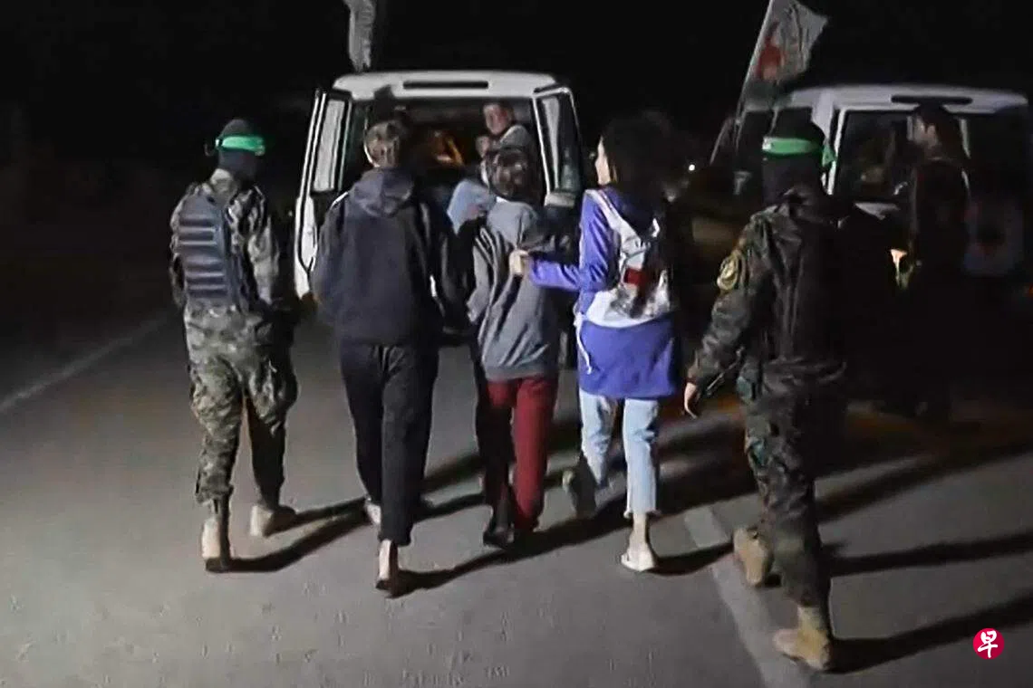 哈马斯星期一(27日)释放了11名人质。卡塔尔外交部说,这11人都是双国籍者,包括三名法国人、两名德国人和六名阿根廷人。作为交换,以色列也再释放33名巴勒斯坦囚犯。