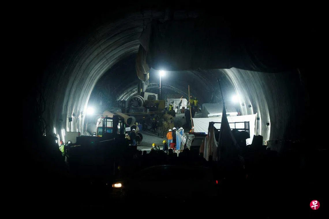 印度救援人员星期二(11月28日)在北部喜马拉雅山区发生隧道坍塌事故现场,成功救出41名工人。