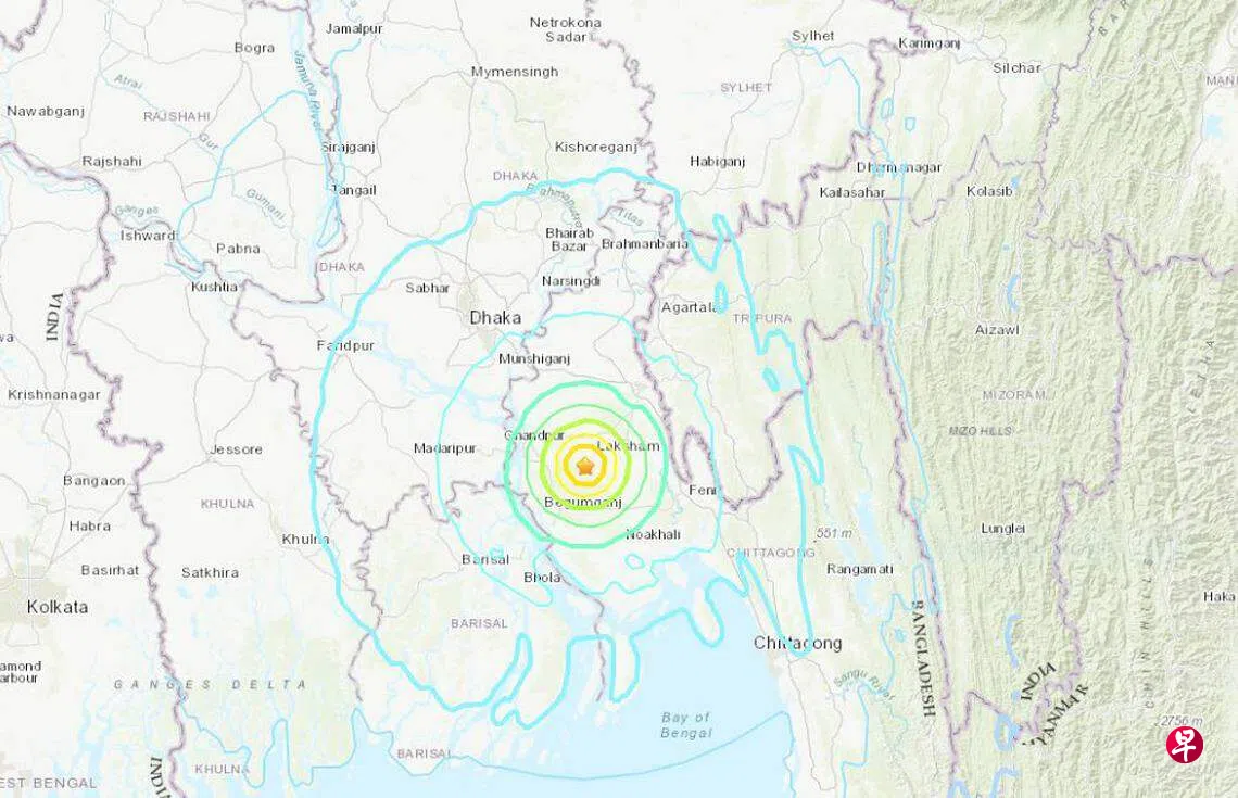 孟加拉发生5.8级地震孟加拉发生5.8级地震,震中初步确定位于北纬23.10度、东经90.89度。 (美国地质调查局截图)孟加拉星期六(12月2日)发生里氏地震仪强度5.8级地震。路透社引述德国地球科学研究中心(GFZ)称,震源深度为10.0公里(6.2英里)。新华社报道,地震发生于新加坡时间11时35分,震中初步确定位于北纬23.10度、东经90.89度。 孟加拉地震上一篇美众议院历史性表决 驱逐共和党“丑闻议员”桑托斯下一篇美最大零售商沃尔玛停止在社媒平台X登广告购买此文章