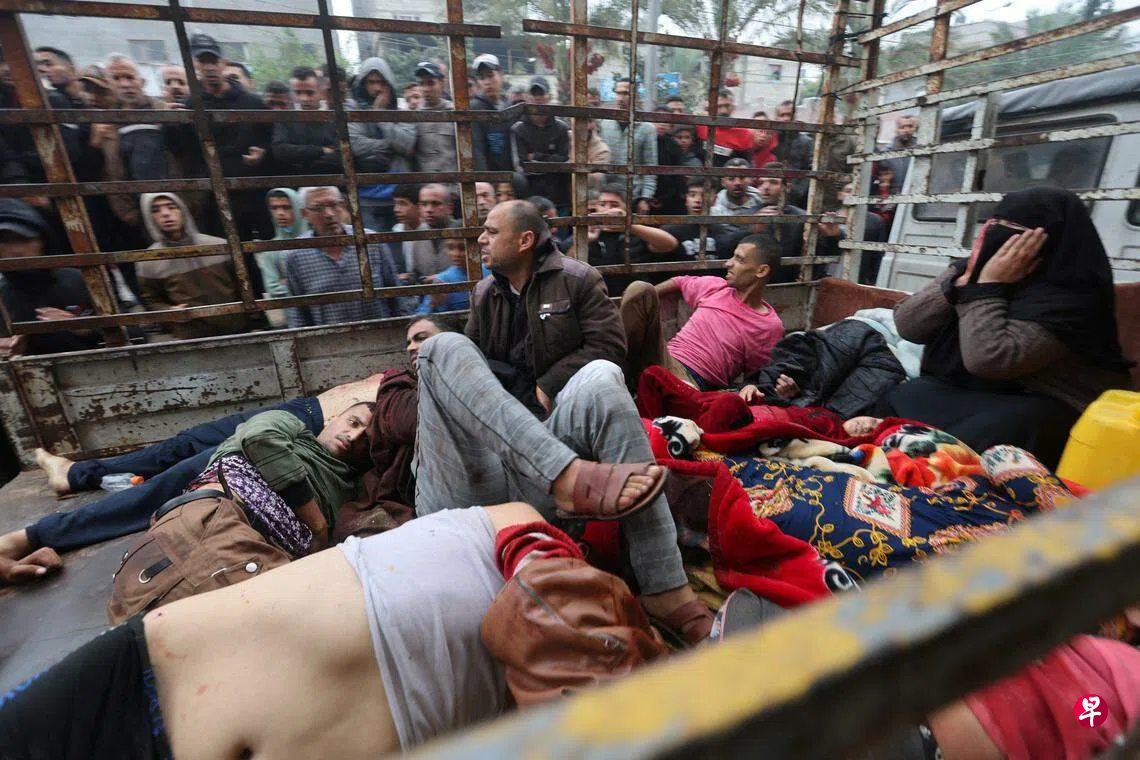 加沙地带的卫生部称,当地一个作为避难所的校园遭到击中,造成25人死亡。救护车和其他车辆将伤者送往汗尤尼斯的一家医院。