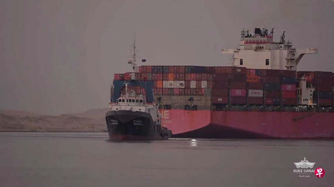 路透社引述苏伊士运河管理局(SCA)的声明说,奥菲斯一号(One Orpheus)在从新加坡驶往荷兰的途中,在运河出舵故障,拖船帮助它航行。