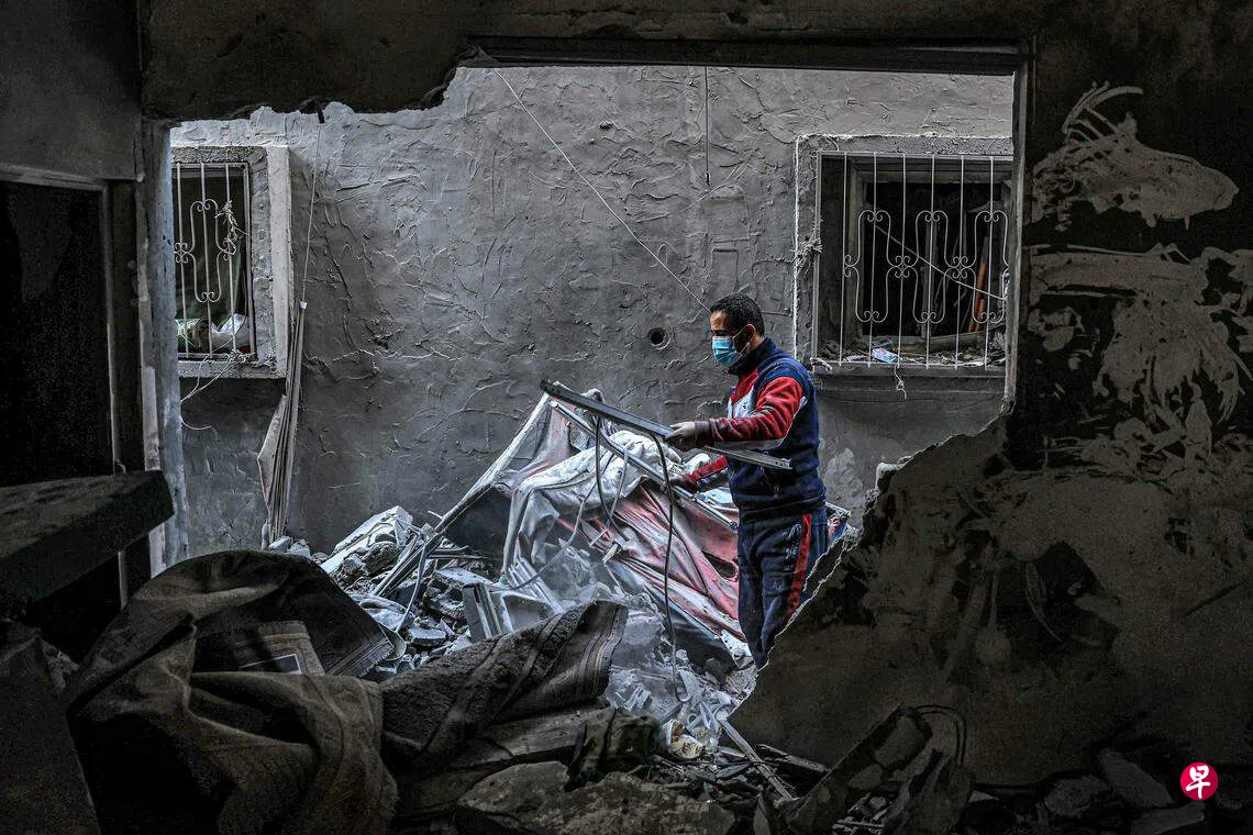 在加沙中部,救援人员连夜从代尔巴拉赫市(Deir al-Balah)一栋被毁的住宅楼中救出人员。