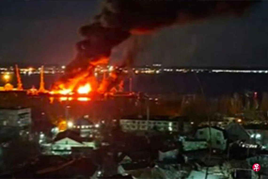 克里米亚州长阿克肖诺夫星期二凌晨4时15分左右在Telegram说:“港口区已被封锁。目前火势受控制。”