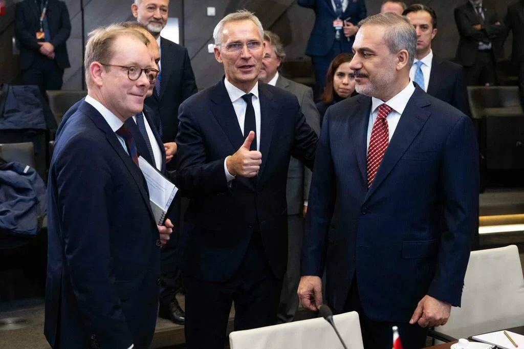 2022年2月俄罗斯入侵乌克兰后,瑞典和芬兰放弃了数十年来奉行的军事不结盟立场,寻求加入美国领导的军事联盟北约。同年7月北约30个成员国的代表签署瑞典和芬兰加入条约的议定书。北约秘书长斯托尔滕贝格当时说,土耳其政府已同意将瑞典加入北约的议定书提交给本国议会批准。
