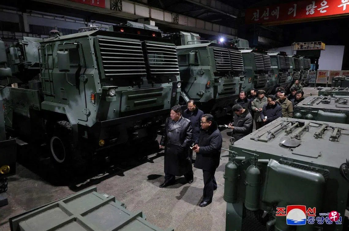 朝中社星期三发表金正恩本周视察军工厂的照片,照片中可见多辆短程导弹发射车。韩国国防部研判,这些发射车上搭载了近程战术导弹,其长度约5米,射程少于300公里。