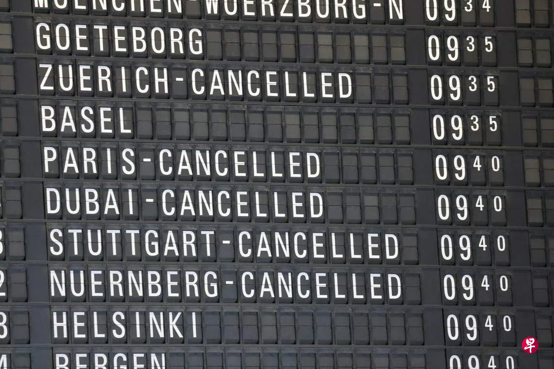 法兰克福机场的运营业者说,在1120趟抵达和出发的航班中,该机场取消了310趟,并指当天可能还会宣布取消其他航班。