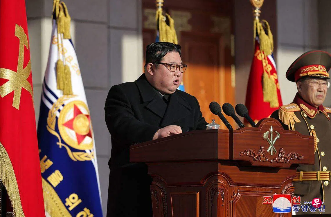 金正恩说,和平不是用乞求和协商换来的。战争不会提前打广告,军队必须时刻保持临战态势。
