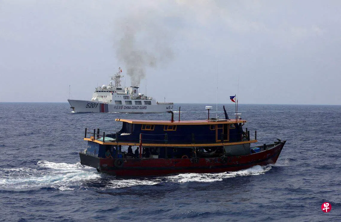 菲律宾海岸警卫队在一份声明中说,在巡逻过程中,中国海警船“四次在海上对特雷莎·马格巴努亚号进行危险的拦截演习,其中两次越过菲方船只的船头”。