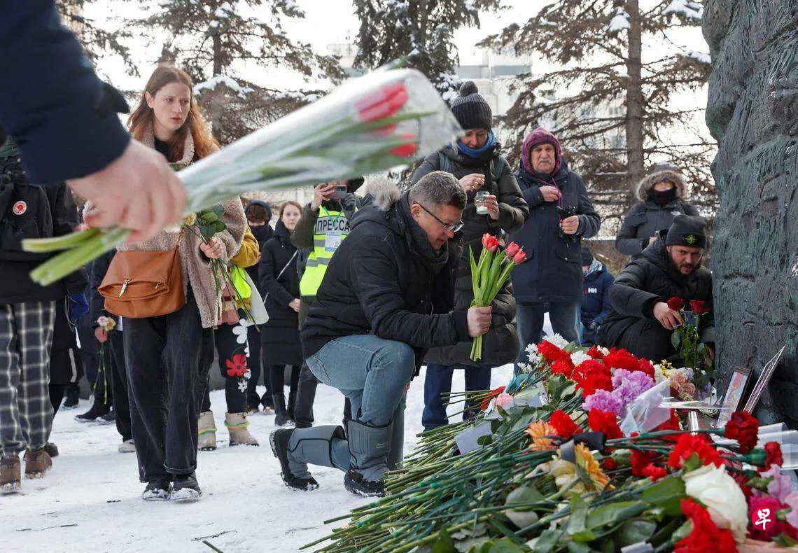 社交媒体视频显示,人们在俄罗斯各地的临时哀悼处献花,有些人被警方拘留。报告俄罗斯集会情况的人权组织OVD-Info称,截至星期六(2月17日)新加坡时间傍晚6时30分,俄罗斯21个城市至少有177人被拘留,其中,第二大城市圣彼得堡有99人被拘留、最大城市首都莫斯科有11人被拘留。纳瓦尔尼的支持者集中在这两大城市。