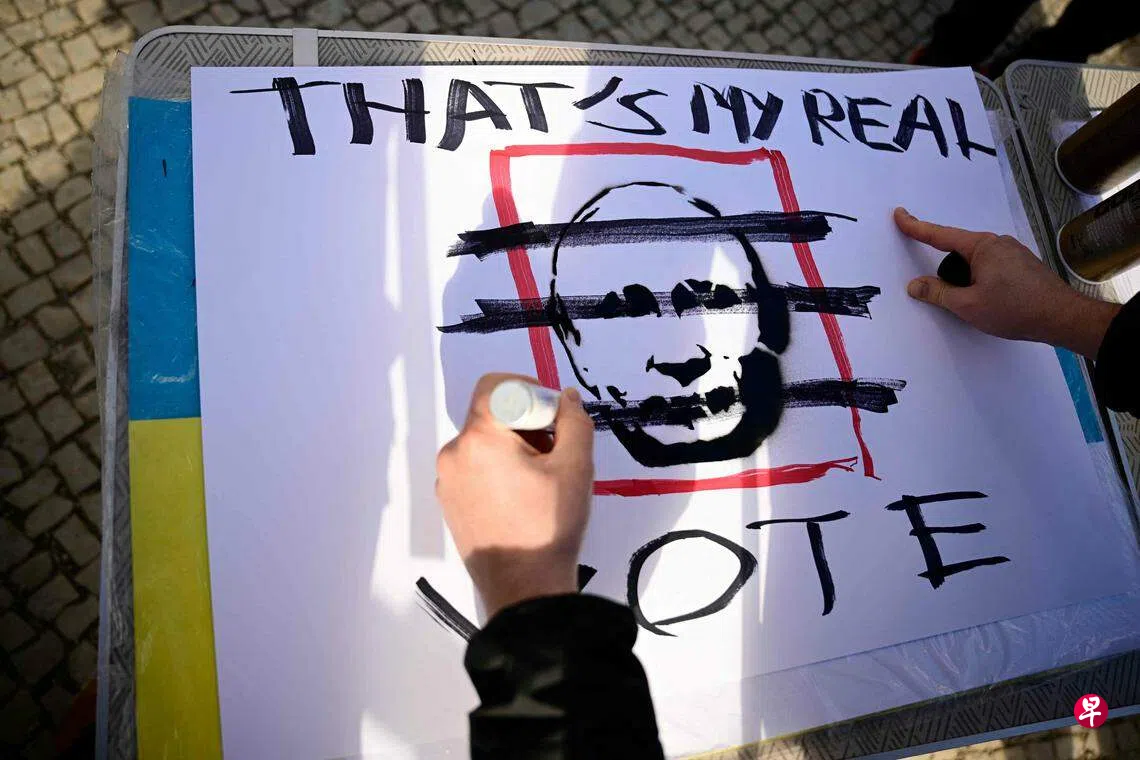 数千名俄罗斯人星期天(3月17日)在各地的投票站参加反对派号召的政治抗议活动,反对总统普京连任。