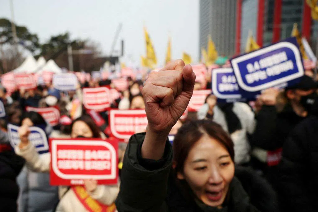 韩国政府2月宣布医学院扩招等一系列医改政策后,初级医生举行大规模罢工,至今已持续近一个月。尹锡悦星期一(3月18日)在首尔一家医院与该院医生举行座谈会,这是他在医改政策颁布后首次访问医院。