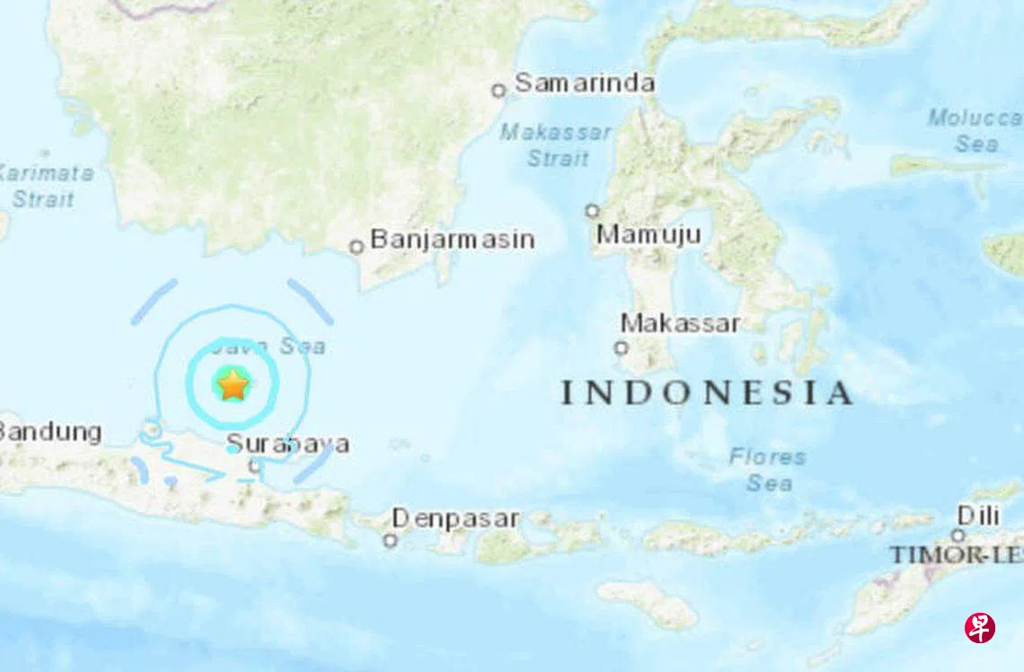 路透社报道,印度尼西亚气象、气候和地球物理局星期五(3月22日)说,震中位于东爪哇省图班市(Tuban)以北132公里处。