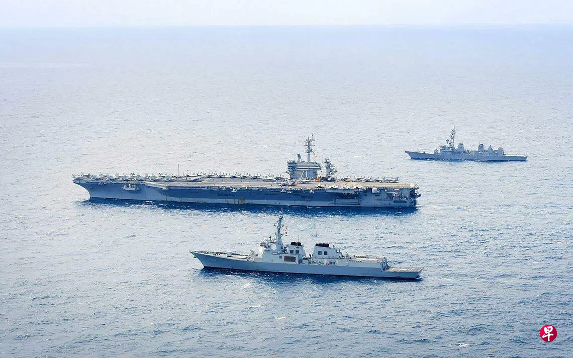 这是美国航母时隔约三个月再次参加韩美日海上联演。