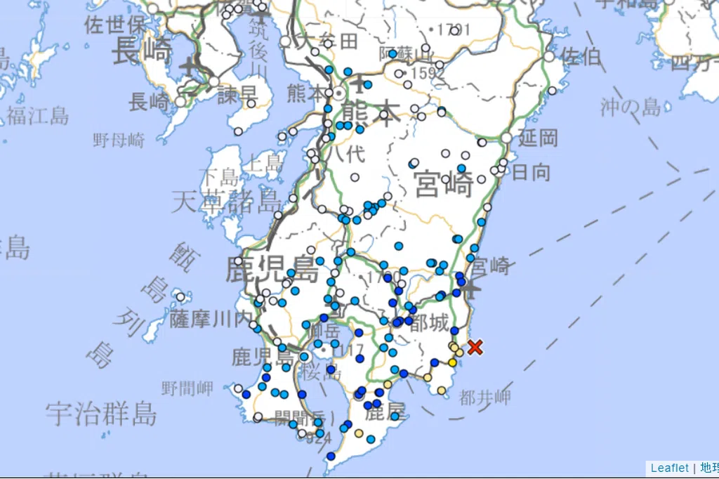据日本媒体报道,高知县宿毛市出现水管破裂、路灯倒塌、电线断裂等基础设施受损情况,爱媛县多地发生塌方。爱媛县和高知县部分地方铁路线路停止运行,松山高速公路因震后安全检查部分路段禁止通行。