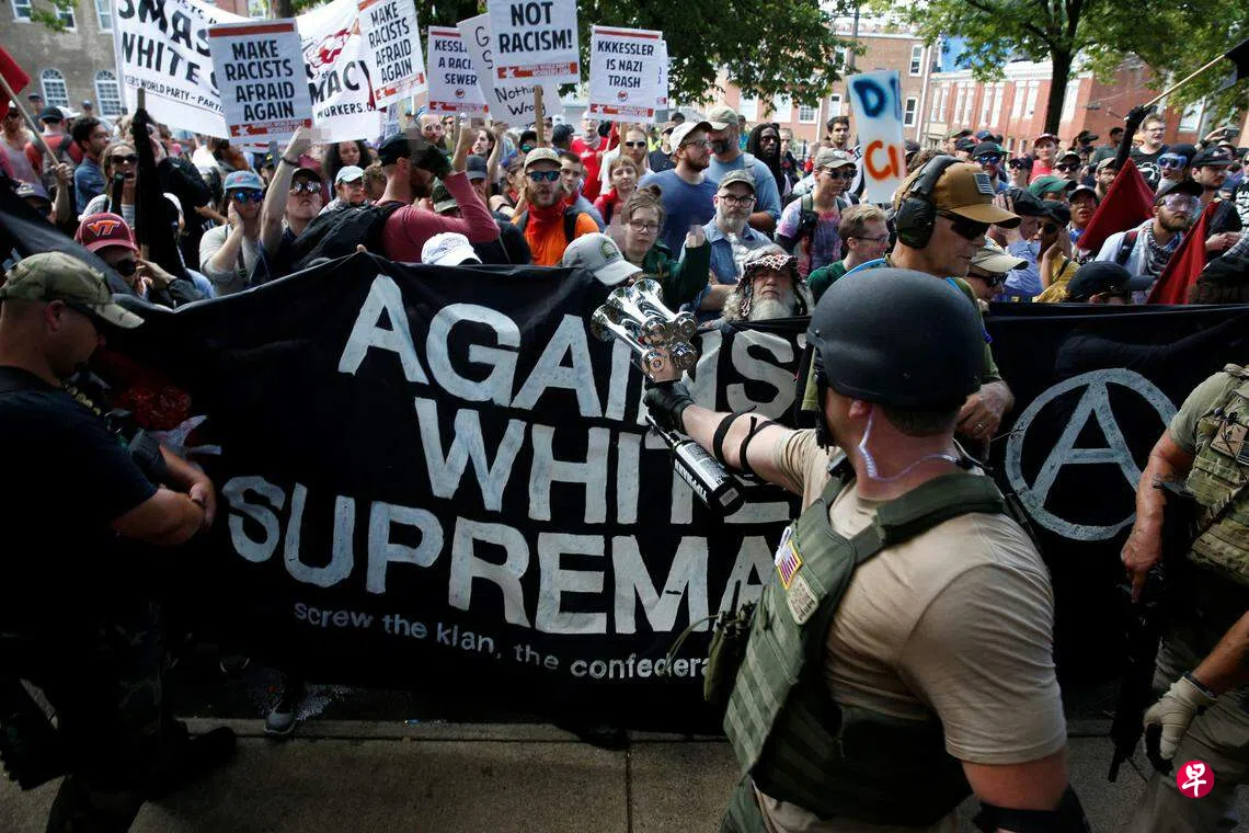 2017年8月12日,白人至上主义者在弗吉尼亚州夏洛茨维尔市举行游行示威,与反对示威者发生暴力冲突,导致一人死亡、10多人受伤。当时特朗普是美国总统。