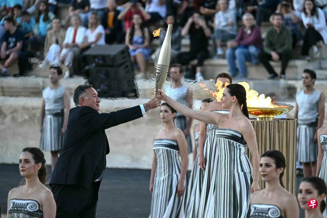 巴黎奥运会火种4月16日在希腊伯罗奔尼撒半岛的古奥林匹亚点燃,在希腊境内经过11天传递后来到雅典。