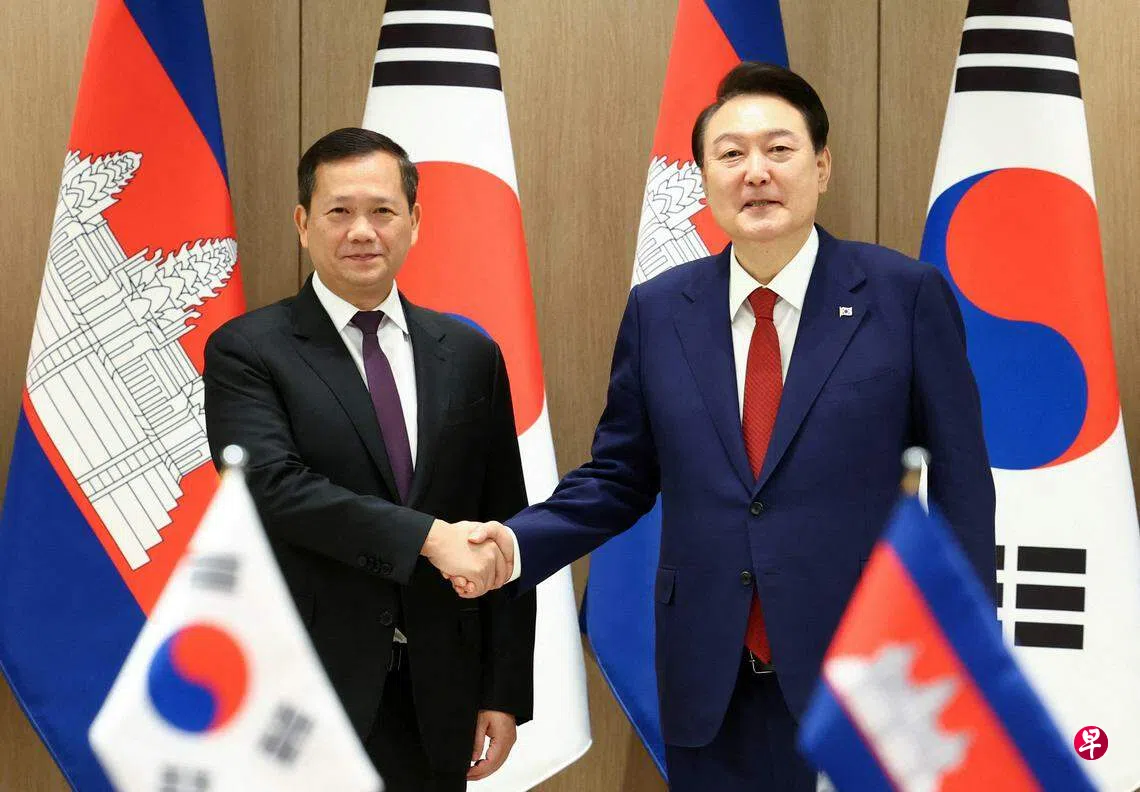 韩国总统尹锡悦星期四(5月16日)在首尔同到访的柬埔寨首相洪马内举行会谈,并在会后发表联合声明,宣布两国建立战略伙伴关系。