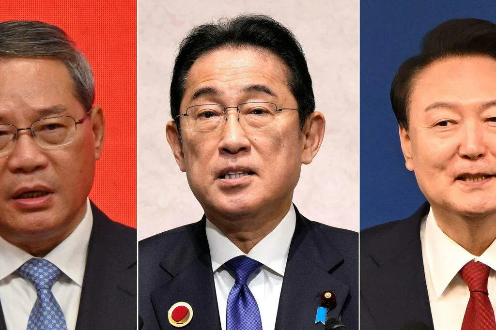 韩国官员说,尹锡悦、李强和岸田文雄将就经贸、科技、人文交流、卫生和人口老龄化等六个领域发表联合声明。