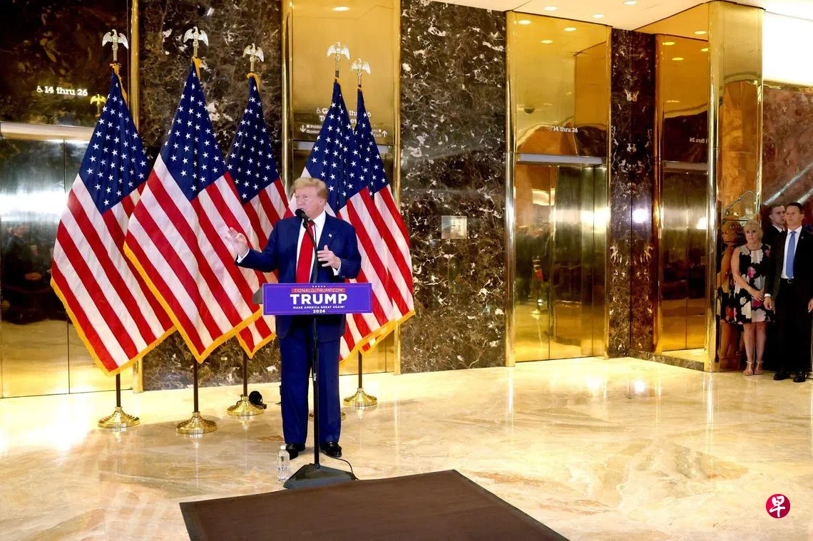 77岁的特朗普被指试图掩盖他与色情片女星丹尼尔斯(Stormy Daniels)的性事,伪造商业记录以掩盖他在2016年美国总统选举前向丹尼尔斯支付13万美元(约17.5万新元)的封口费,以避免影响他的总统竞选。