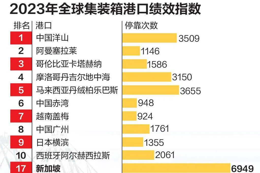 据纳米比亚日报《纳米比亚人》报道,根据该指数,世界上最好的港口是中国的洋山港,排名第二的是阿曼的塞拉莱港(Port of Salalah),位列第三的是哥伦比亚的卡塔赫纳港(Cartagena Port)。