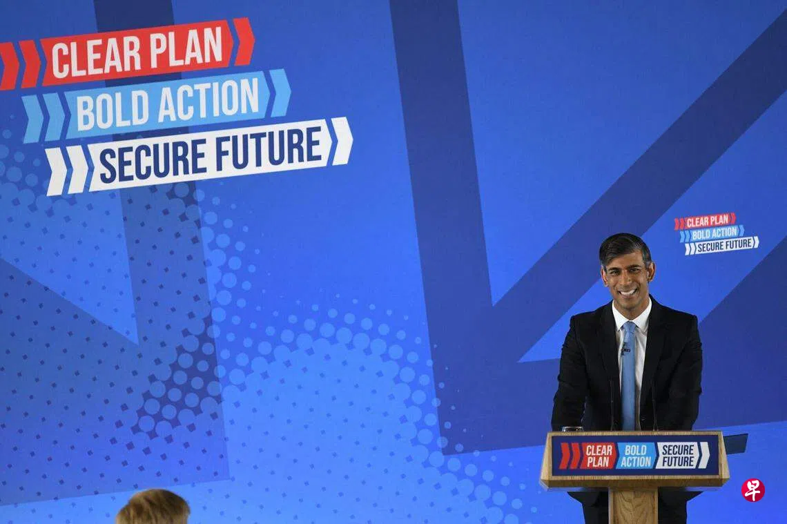 英国首相苏纳克将减税作为保守党竞选宣言的核心,他承诺如果再次当选,将为工薪阶层减税172亿英镑(约292亿新元)。