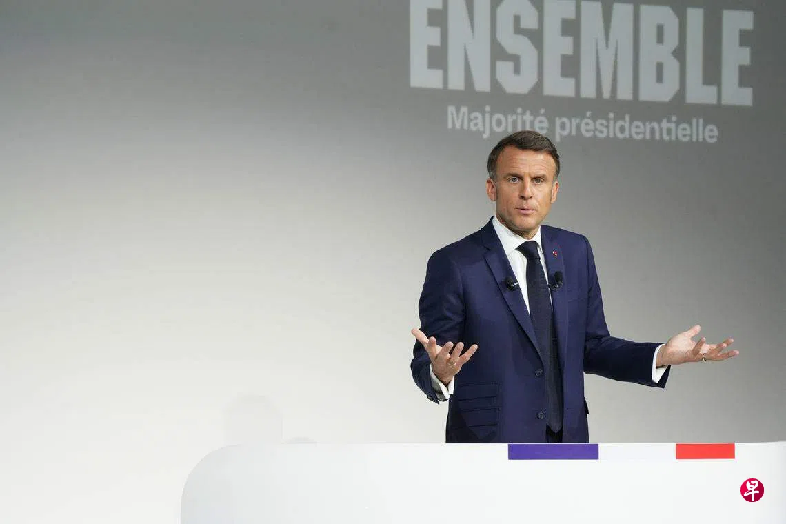 法国总统马克龙星期三(6月12日)敦促政治中心两边的对手政党与他一起在即将举行的立法选举中建立民主联盟,对抗勒庞的极右翼国民联盟。