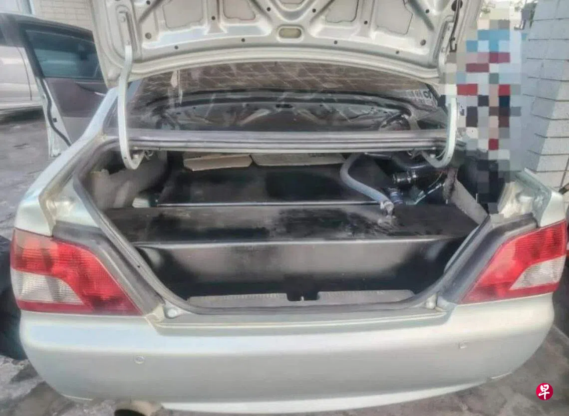 他说,玻州内贸局与警方上星期五(14日)展开“补洞行动”3.0时,发现一辆马国车牌的车子在加央一带油站频密添油。执法人员拦下车子检查时,发现车子非法增设三个油箱,并起获767公升、总值超过8582令吉(约2461新元)的RON95汽油。