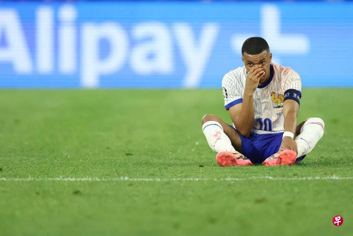 在新加坡时间星期二(6月18日)凌晨进行的欧锦赛上,夺冠大热法国凭借姆巴佩(Mbappe)制造的乌龙球,以1比0小胜奥地利,但这名法国球星却在最后时刻鼻骨骨折,为征程埋下阴影。