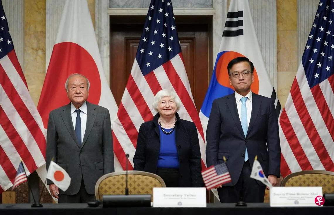 韩国和日本财政部长在双边会晤时,表达对两国货币大幅贬值的共同担忧,并誓言将采取措施捍卫货币。
