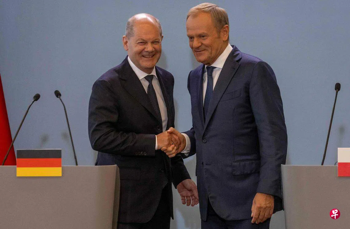 德国总理朔尔茨会见波兰总理图斯克,并呼吁扩大德国和波兰之间的交通和运输路线。