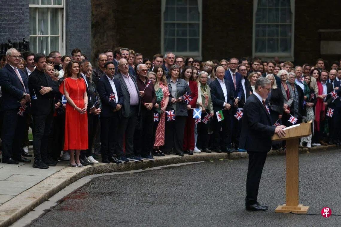 英国星期四(4日)举行议会下院选举,选举结果星期五出炉。斯塔默领导的工党赢得议会下院超过半数席位,成为执政党。当天在白金汉宫,斯塔默被国王查尔斯三世授权组建新内阁,正式就任首相。