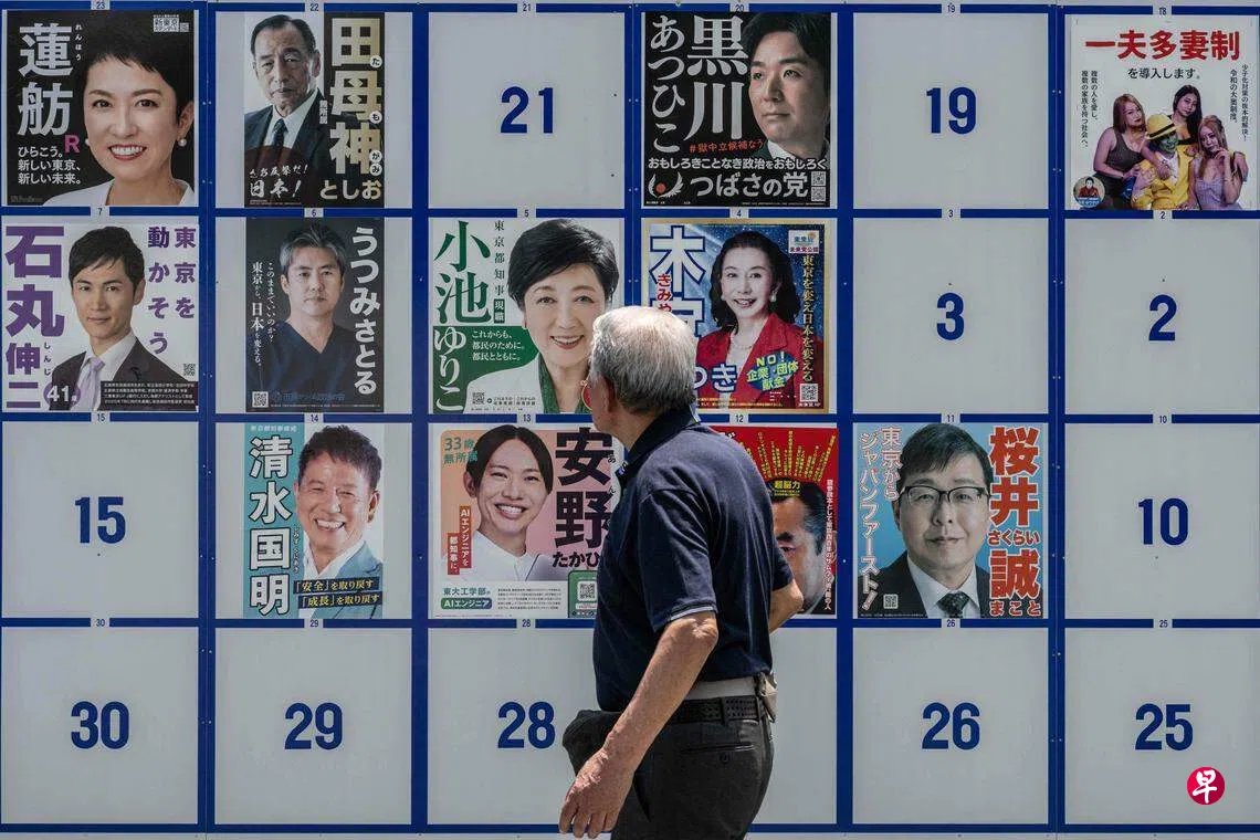 日本首都东京星期天(7月7日)举行知事选举,1100万合格选民要在56名候选人当中选出下一任知事。