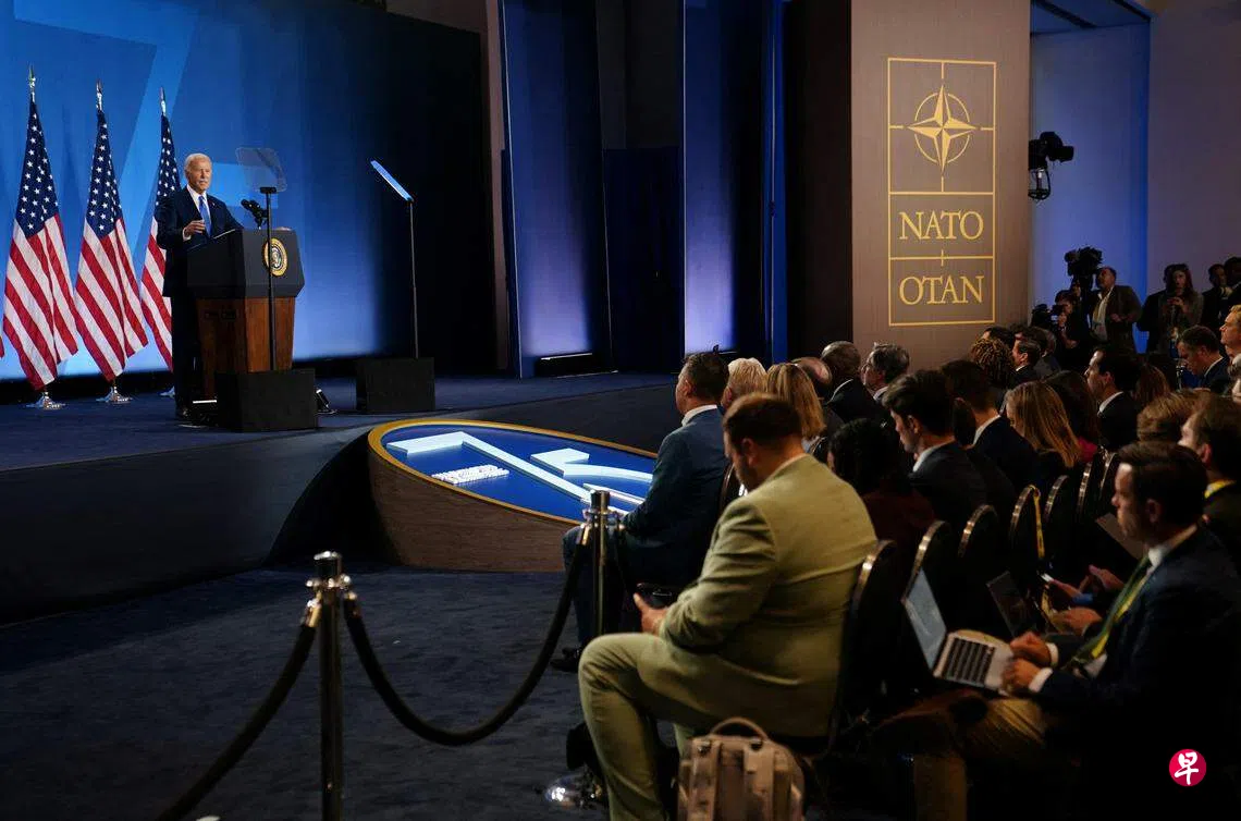拜登的记者会于本周北约峰会举办地点沃尔特·华盛顿会议中心举行。星期四是拜登忙碌的一天,在记者会之前,他的日程还包括参加两场北约工作会议和与乌克兰总统泽连斯基会晤。