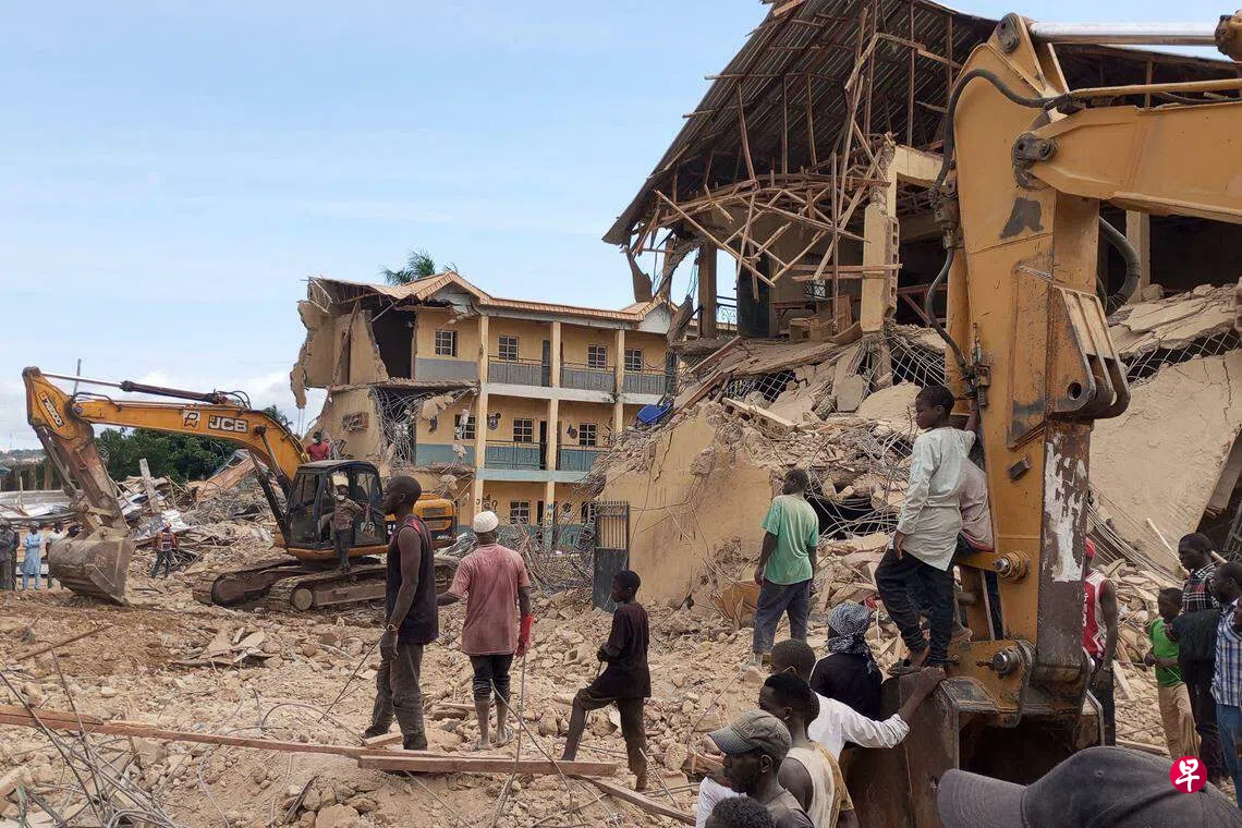 据法新社记者在现场报道,高原州乔斯北区圣学院学校倒塌后,受困学生在废墟下呼救,慌乱的家长们四处寻找孩子。