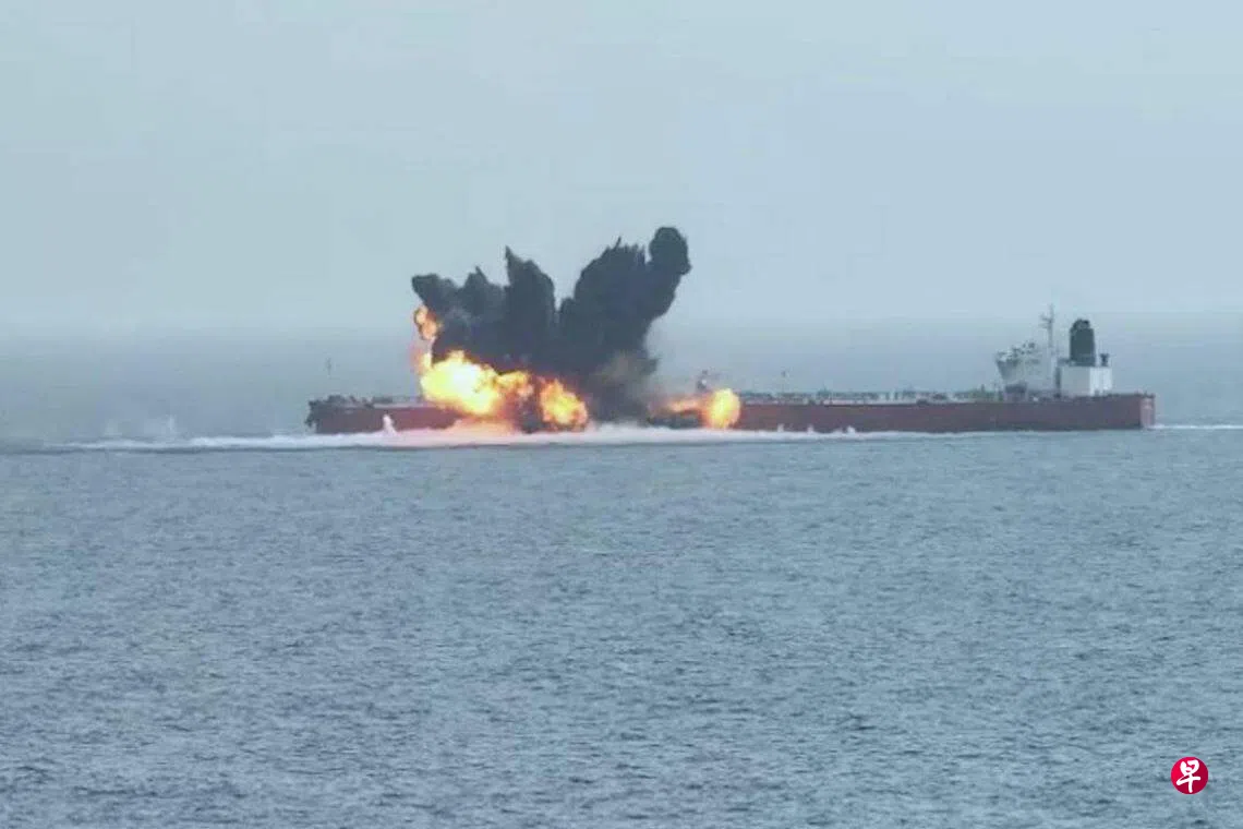 UKMTO称,首先,一个无人航空系统在商船附近爆炸,造成轻微损坏。第二次袭击涉及一艘无人水面舰艇,这艘舰艇也在商船附近爆炸,幸好船员和船只都安全。