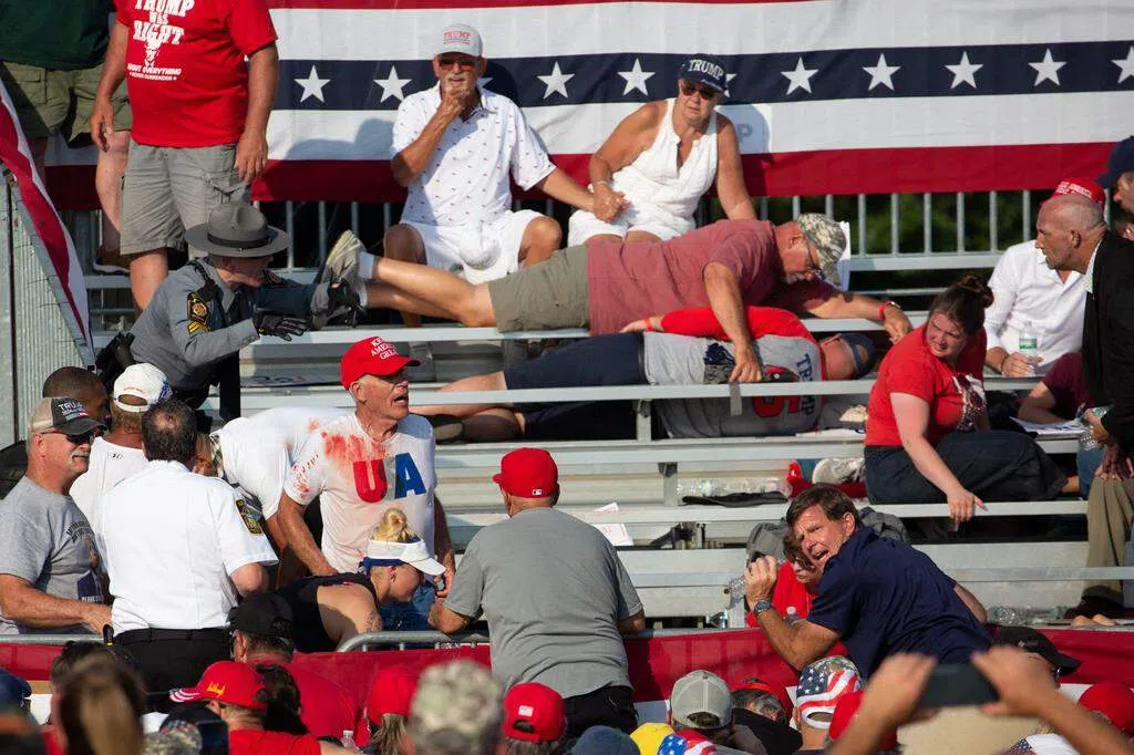 7月13日,特朗普在宾夕法尼亚州巴特勒县的竞选集会上遭枪击,导致右耳受伤,现场观众一死两伤。