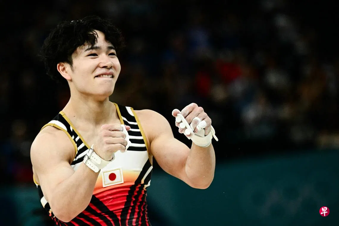 (巴黎综合电)日本选手冈慎之助新加坡时间星期四(8月1日)凌晨在巴黎奥运会竞技体操男子全能决赛摘冠。中国选手张博恒和肖若腾拿下银牌和铜牌。