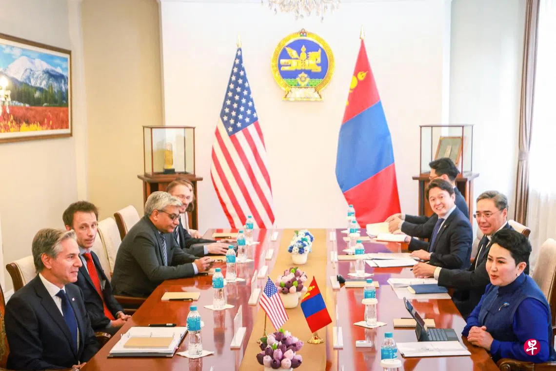 布林肯在蒙古首都乌兰巴托发表讲话时警告,中东正走在一条“迈向更多冲突、暴力、苦难和不安全的道路上,我们必须打破这种循环”。