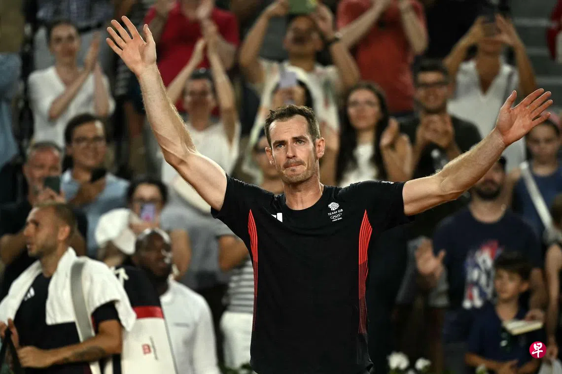 37岁的三届大满贯冠军默里和搭档埃文斯(Evans)在男双八强2比6、4比6不敌美国组合弗里茨(Fritz)和保罗(Paul)后,在掌声中谢幕。他早前已经宣布将在巴黎奥运会后退役。