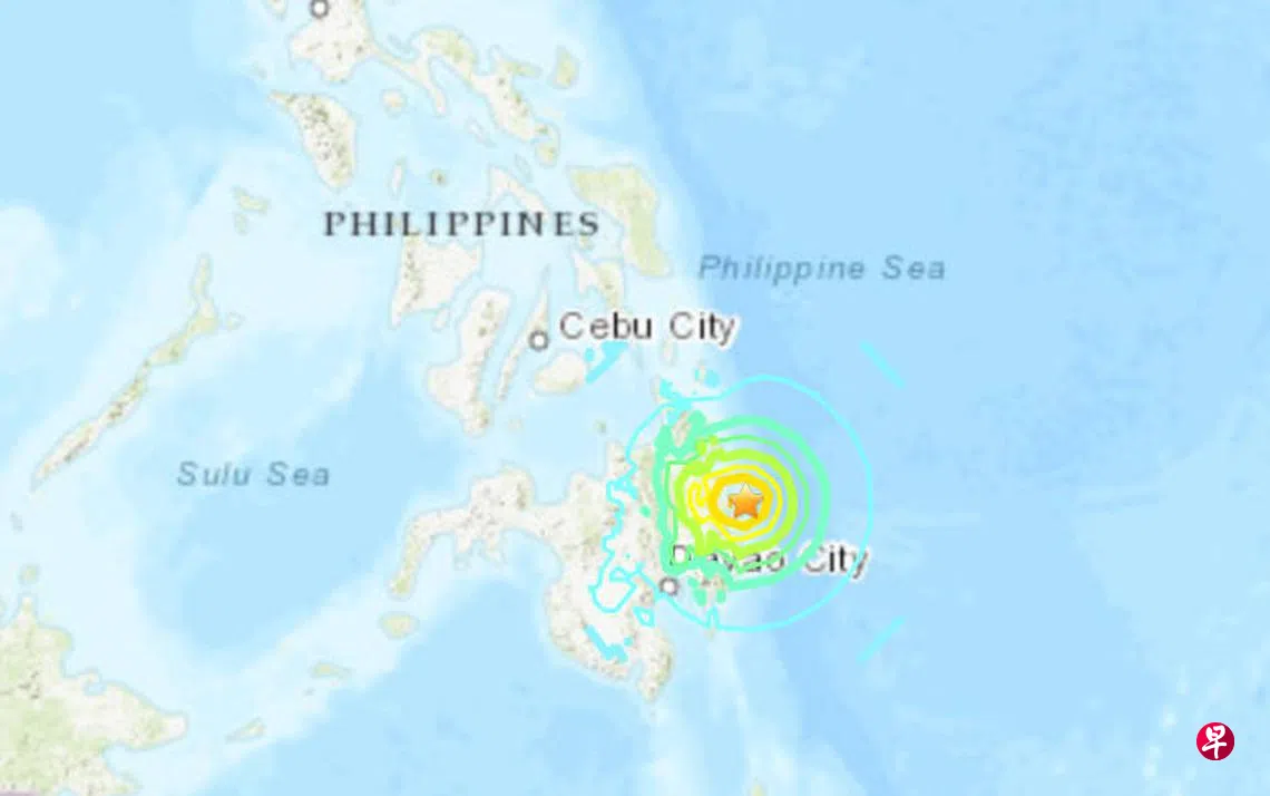美国地质调查局地震信息网消息,菲律宾南部棉兰老岛附近海域星期六(8月3日)清晨6时23分(菲律宾和新加坡无时差)发生6.8级地震,目前暂无人员伤亡或财产损失报告。
