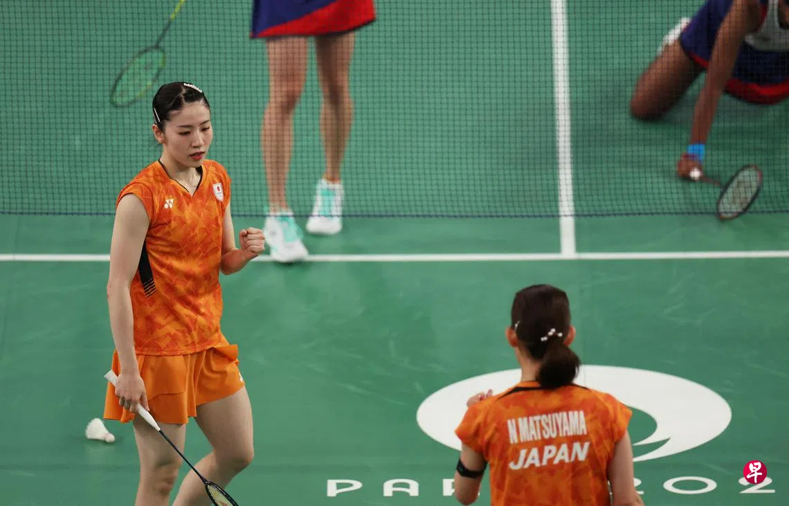 赛会四号种子,日本组合松山奈未/志田千阳在新加坡时间星期六(8月3日)晚铜牌赛中以21比11,21比11大比分2比0横扫马来西亚的陈康乐/蒂娜组合,夺得巴黎奥运会女子双人羽毛球铜牌。