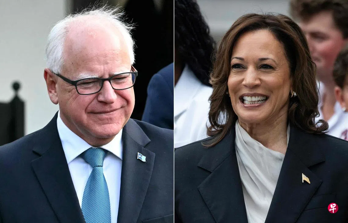 美国民主党总统候选人哈里斯,选定明尼苏达州长沃尔兹为竞选搭档。