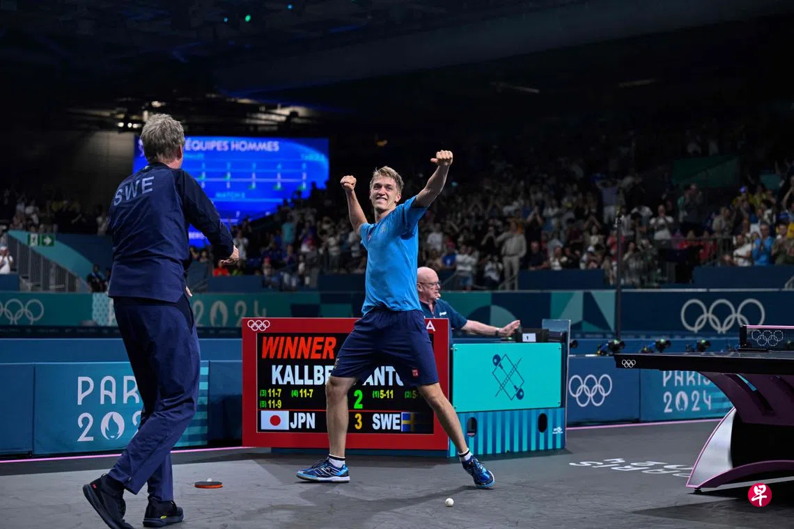 第一盘双打,卡尔伯格/卡尔森发挥勇猛,第一局以11比8的比分击败篠塚大登/户上隼辅。随后日本组合以11比9、11比4、11比7连胜三局,拿下第一分。