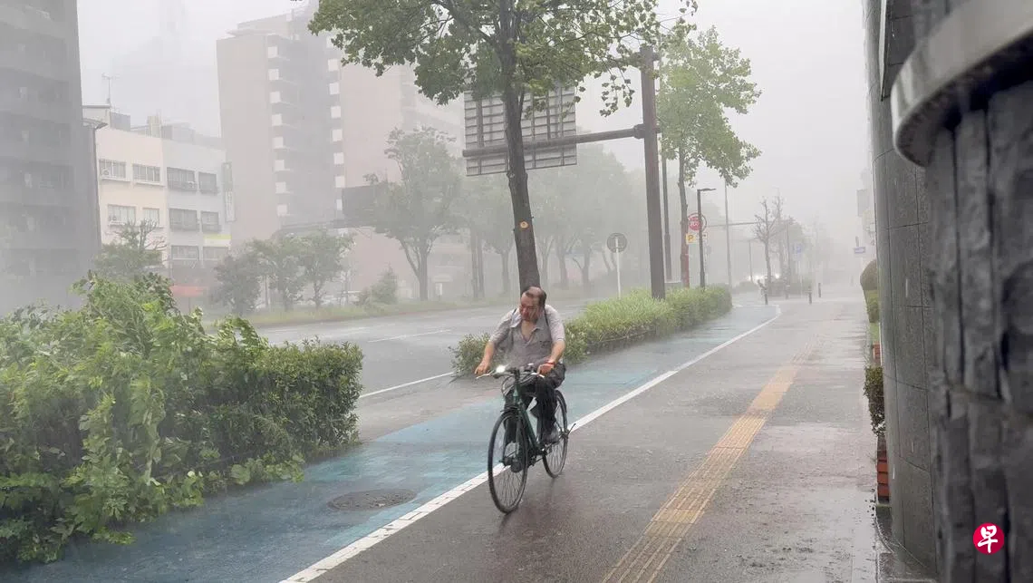 气象机构提醒居民待在室内并注意水患,企业敦促员工提前回家。根据气象预测,强热带风暴“安比”将于星期五(8月16日)中午前后最为接近日本。