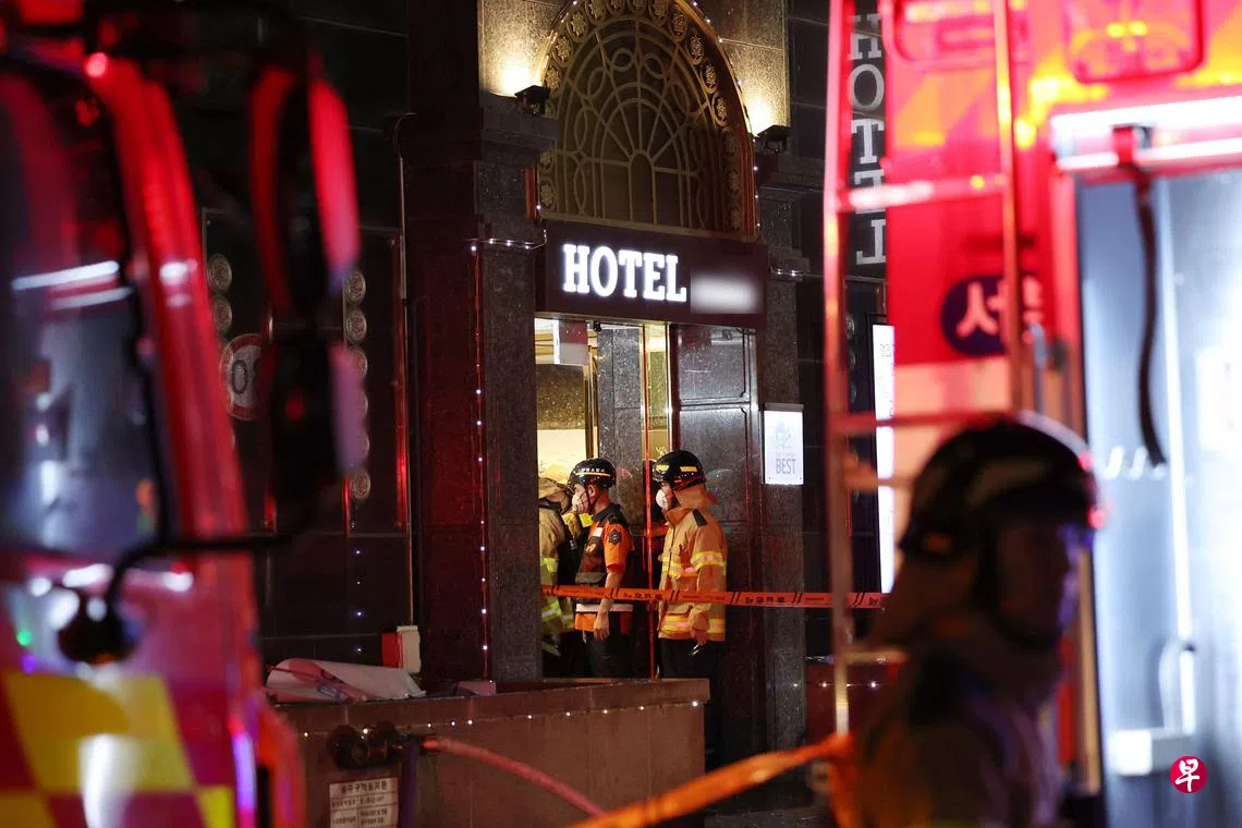 富川消防局官员说,大部分死者是酒店客人,12人被送院治疗,其中三人情况危急。